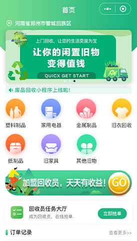 「牽單回收」一鍵下單廢品回收,更有回收員入駐,申請(qǐng)加盟等,專注于互聯(lián)網(wǎng)回收聯(lián)盟